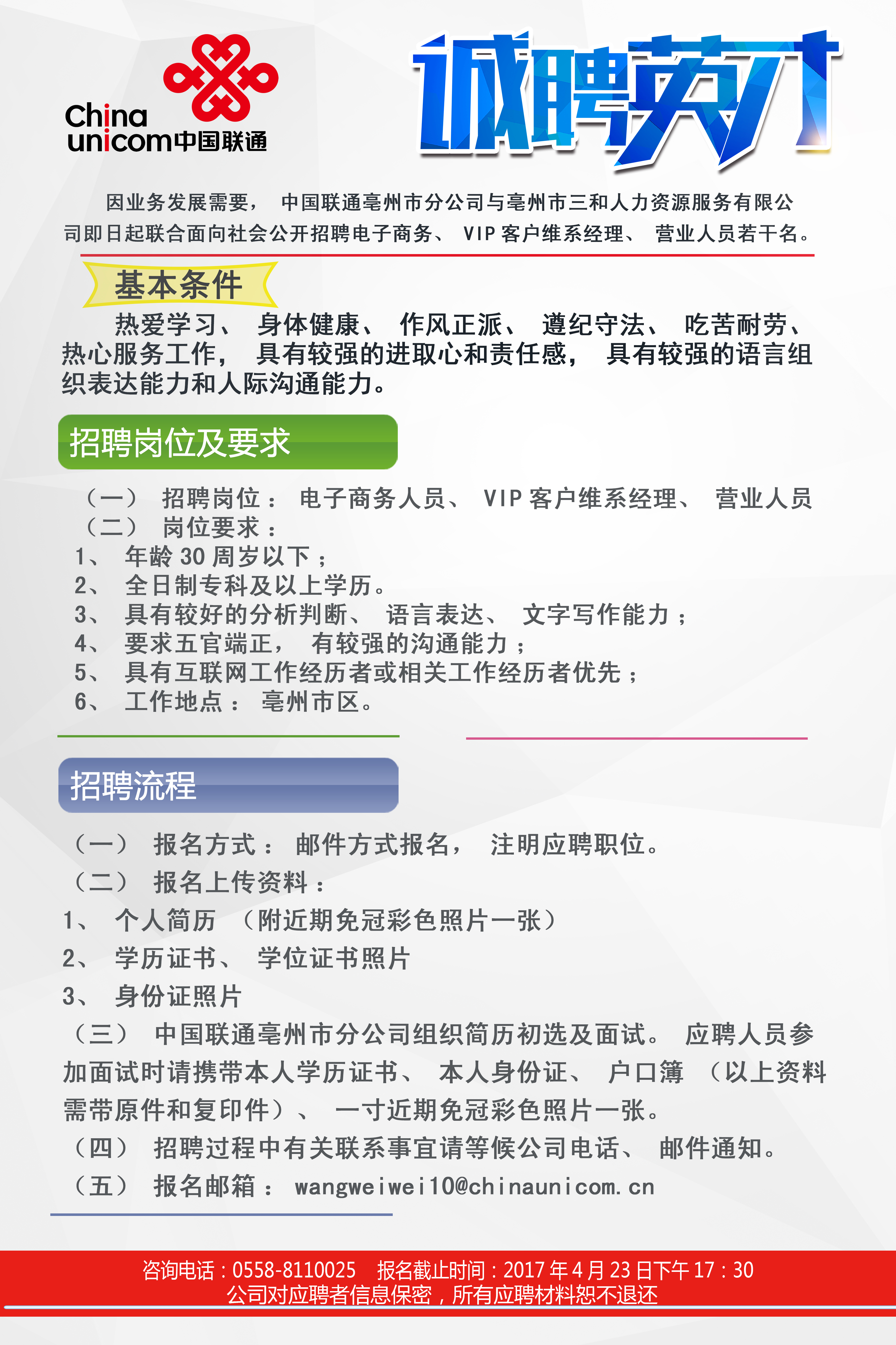 亳州聯(lián)通公司招聘