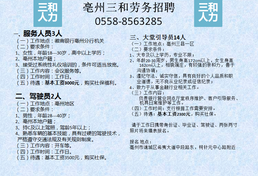 All rights reserved 版權(quán)所有 亳州市三和人力資源服務(wù)有限公司 m.jzzfu.com