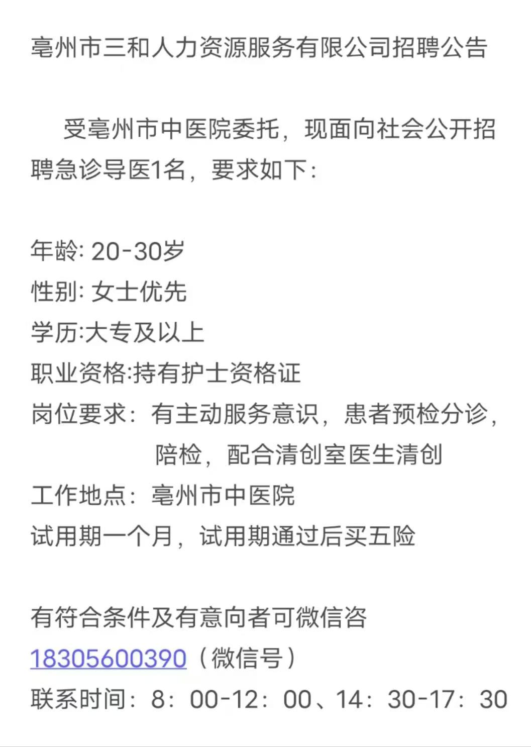 招聘急診導(dǎo)醫(yī)